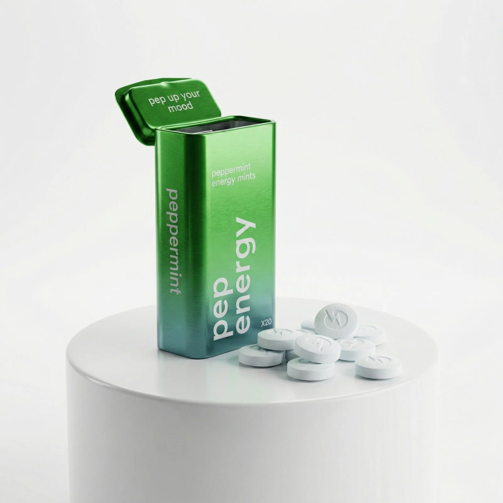 Branding that fits a young company. Two young entrepreneurs putting pep in your step with energizing mints that ensure you won't doze off in class or during your fifth meeting of the day. This branding was done in a short time window around the Hollidays we fully revamped this brand with in a month. so they had a FRESH start in 2026.